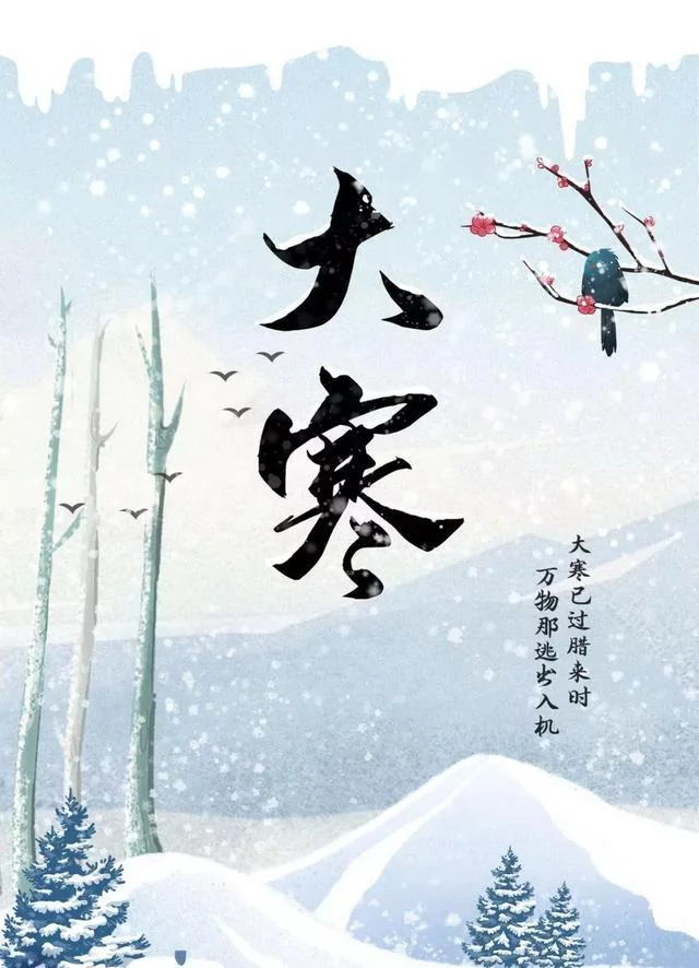 大寒,是二十来自四节气中的最后一个节气。斗指丑;太阳黄经击座模个达300°;于每年公历1月20-21日交节。大寒同小寒一样,都是表示天气寒冷程度的节气,大寒是天气寒冷到极致的意思。大寒节气处在三九、四九时360百科段,此时寒潮南下频繁,是特建一年中的最寒冷时节。