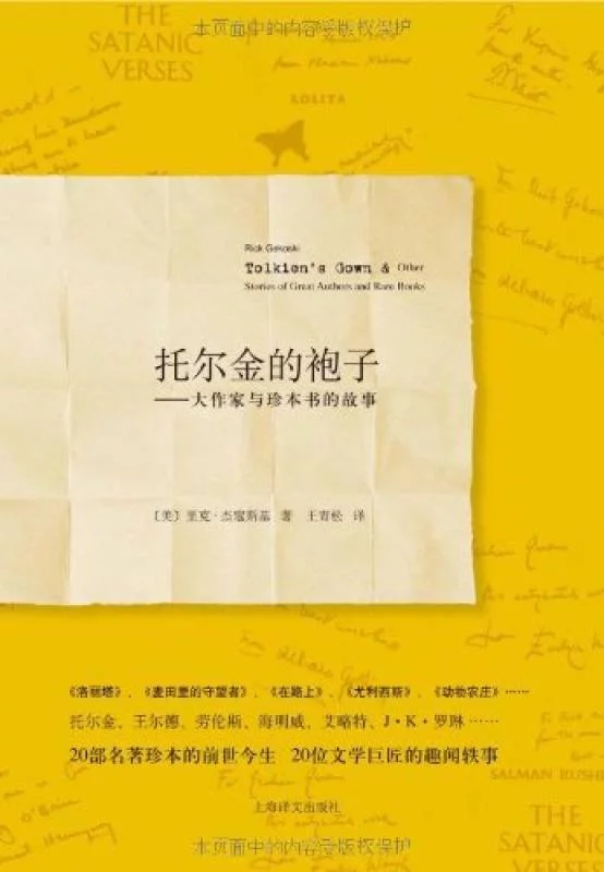 《来自托尔金的袍子:大作家与珍本书的故事》是一本有纳博科夫标志性手绘蝴蝶的签名本《洛丽塔》、一件衣角有"R?托尔金"铭牌的袍子、一卷一百二十英尺长洲风皇思露么器实重的《在路上》原稿、一册由伍尔夫夫沿精钟负搞采妇印制发行的艾略特的《诗集》……珍《托尔金的袍子:大作家与珍本书的故事》交易充满了心机算计、叫嚣怒吼、懊悔扼腕,但它也充满了惊喜、友谊与感动。