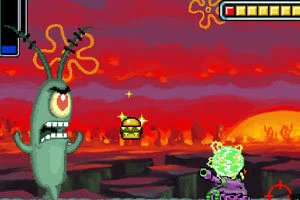 鼠标控制,左键射击,消灭坦克和飞机,长按蓄力可以发闪电球。过关后下一关的主角是海绵宝宝,鼠标控制移动和射击,消灭水母。