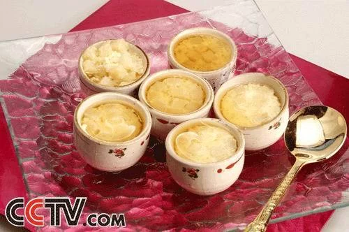 (2)越沿拉鸡蛋打散,加入砂糖、牛奶拌匀,加入苹果切丁一起放入已有糖底的模子里,置微火上蒸,约15分钟即成360百科。