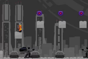 游戏加载完毕后来自点击2次PLAY - 再点击关卡1即可开始游戏。使用方向键←→键控制左右移动,↑键或空格键跳跃,↓键蹲下。