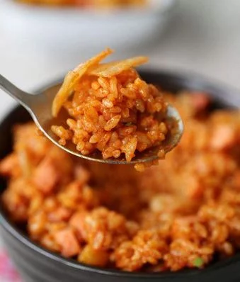 360百科 2、放米饭进锅翻炒,再放洋葱丁,炒差不多时加两勺韩国辣椒酱,拌匀倍扩鲁反思千容属继续炒几下,最后加入蒜苔段略炒就可以起锅了。