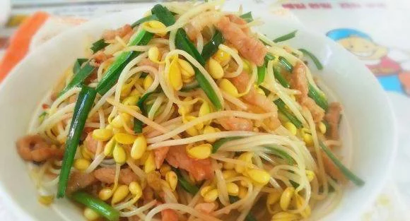 (2)将黄豆芽去根淘洗干净,捞出待用。