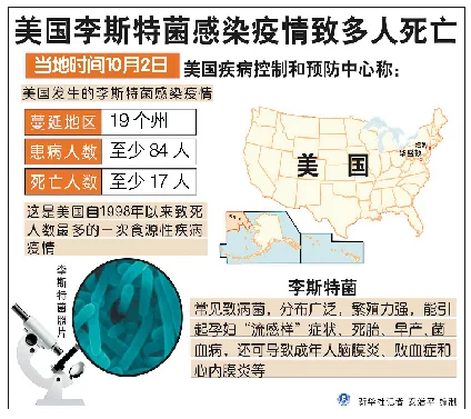 美国疾控中心表示,由于李斯特菌感染者可能在被感染两个月后才出现症状,因此确诊的感染者数量可能会持续增多。