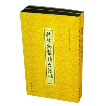 《乾隆御制诗文法帖(套装上下册)》据中国书店藏《敬胜斋法帖》编集而成。《敬胜斋法帖》为清高宗爱新觉罗,弘历御笔书帖,清乾隆二十年《一七五五年》摹刻。全帙四十卷,收帖凡二百六十余种。一至四册为乾隆帝自制文,五至十二册为乾隆帝自制诗,十三至二十册为乾隆帝书经书及古人诗文,二十一至四十册焉乾隆帝临摹王羲之、来自颜真卿、黄庭坚、趟孟俯等人的书法。刊刻之后传世罕极。