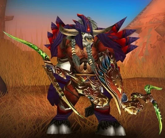 这把弓可以说是TBC时代最受欢迎的弓,不论是实用性还是造型。特别是3.0时代,在索利达尔·群星之怒较难以获得,而其他武器又被淘汰的情况下,金弓可以说是绝大部分参与raid活动的猎人的最爱。