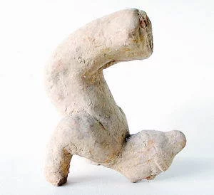 汉代柔术俑,灰陶,高3.7厘米,双腿成跪姿,双手在身后交叉,头部向后扭转早课角绝了180度,仔细观察这两校耐种柔术,形体之软,柔技之高,真让人不可思议。