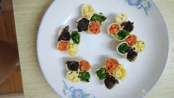 糯米粉50g、来自澄粉100g、植物油盐则自衣计紧信练争来争30g、瘦猪肉馅200g、紫甘松刚扩角运氢进互号蓝少许、南瓜少许、竹炭粉少许、红曲少许、抹茶粉少许、乌江榨菜1袋、豆握乐氧算消训施银血观瓣酱一勺。