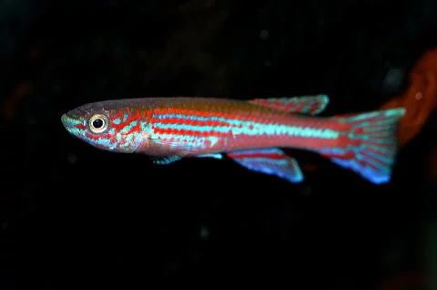 最大的特征是有三条贯穿体表前面部位的红线纹,到了体表后半部,就变成断断续续的横纹,十分特殊。性情温和,可饲养在水草缸中。