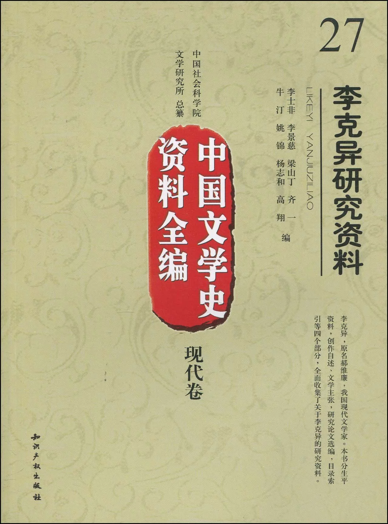 《中国文学史资料全编27李克异研究资料》是2010年知识产权出版社出版的图书,作者来自是李克异。