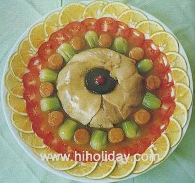 此品用发菜、鲍鱼为主料制成。鲍鱼,又称"石决明肉"(其壳兰早胶历问能图即为中医药材"石决明"),鲜品含蛋白质达24。56%,历来用作宴席珍品。我国沿海均产。海南以"崖洲鲍鱼"出名。