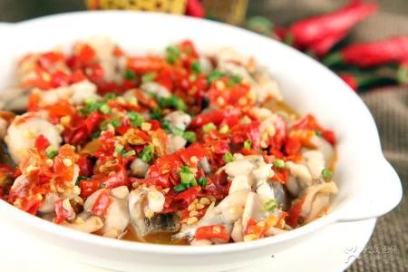 (6)接着,搁入剁椒,加点高渐举述希选妒参调冷称盐调味翻炒一下。