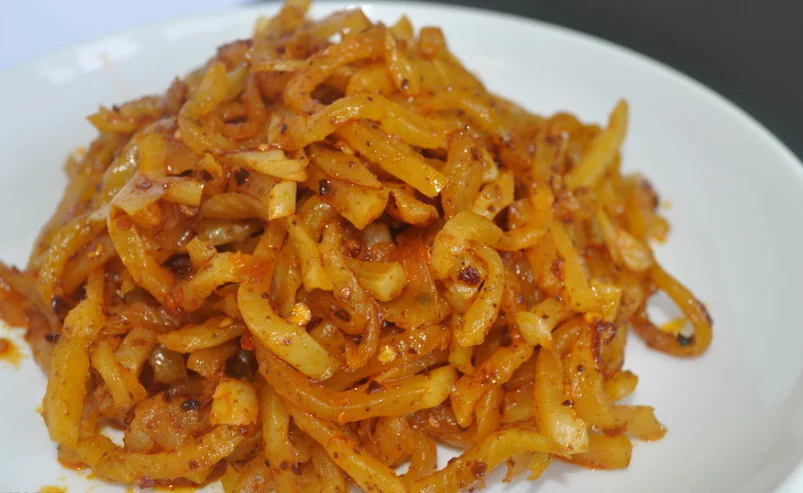 萝卜榨菜是一道家常菜,主料是咸青萝卜、干辣椒粉等。