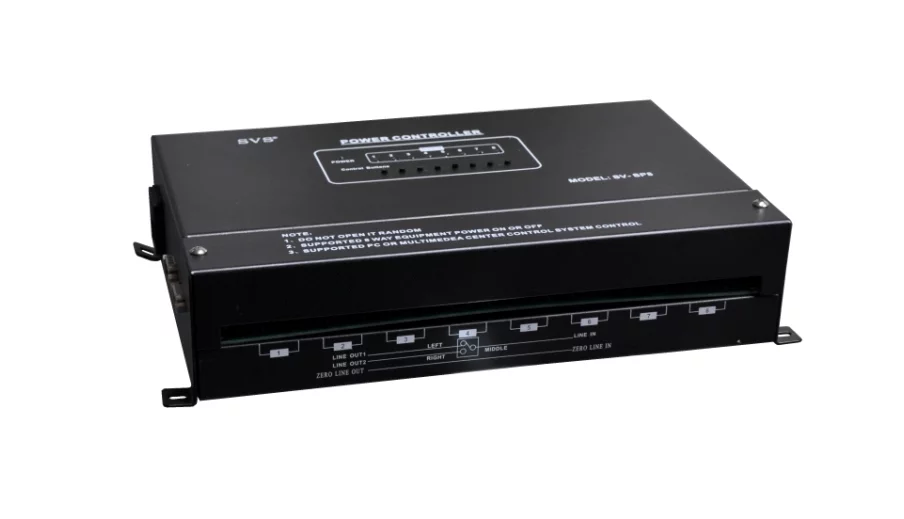 电源控制器,可以发送RS-232和RS-485代码,用电脑和中控对设备进行控制,如设备开关,投影机延时关机,电动屏幕、电动窗帘、电动吊架的升降控制等。