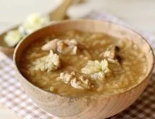用白果仁、核桃肉、制首乌、粳米制作成的具有温补肾阳、健脑、润肺平喘的汤品。