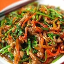 4.迅速回门地适温强字待攻划开炒至变色后捞出。