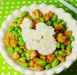 毛豆鸡丁饭是由毛豆、鸡脯肉、鸡蛋等材料制作的一道美食。