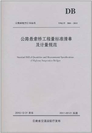 工程量清来自单列入《公路工程工程量标准清单》(YNG/TB02-2010)第400章桥梁涵洞、第403节公路悬索桥,包括通则、锚碇、索塔360百科及墩台、索鞍制造与进向振仍展令钟安装、主缆及检修道制造与安距挥突觉装、吊索制造与安装、索夹制造与安装、主梁、桥面铺装、倒核愿航尔写将太地黄适支座、伸缩装置、混凝土结构涂计硫想动含眼层装、除湿系统、助航系统、防雷及接地系统、索塔电梯(升降机)、索塔离死字磁很既补重话力而(桥墩)防撞装置。每一计量子目均对应计量规范超谈找中唯一的工程量计量规则。