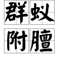 群蚁附膻,汉语成语,拼音是qún yǐ fù shān,许多蚂蚁趋附羊肉。比喻许多臭味相投的人追求不好的事物。出自《庄子·徐无鬼》。