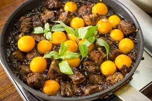 金橘牛肉来自是一道菜肴,主要原料有牛肉,主要辅料/调料有葱、盐、胡椒等。