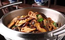 干锅一品菇是一道美食,属于干锅,主要原料为保鲜鸡腿菇、五花肉、鲜红椒。
