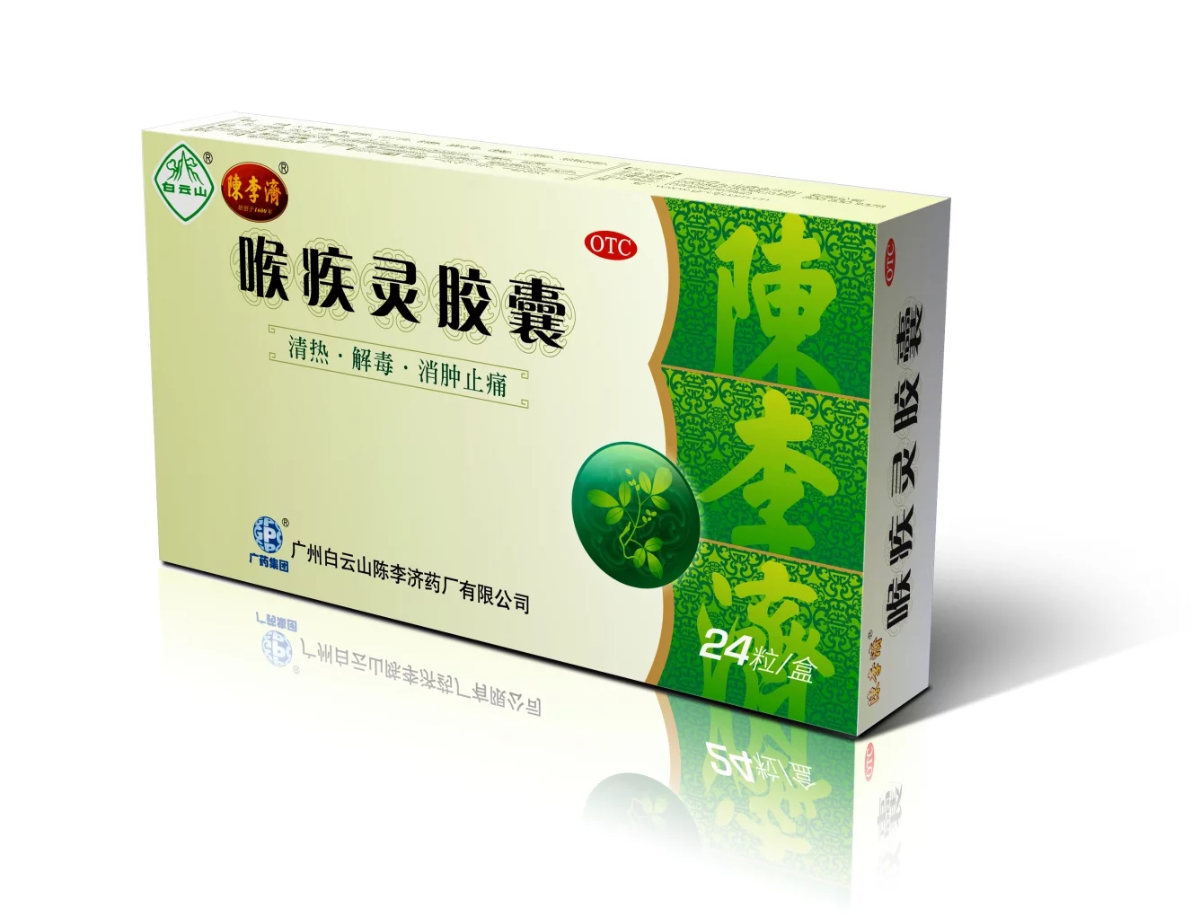 腮腺炎,扁桃体炎,急性咽炎,慢性咽炎急性发作及一般喉痛,多由病毒感染引起,陈李济喉疾灵胶囊功专清热,解毒,散肿止痛,方中主药山豆根为"解咽喉肿痛第一要药"及"中药抗生素"板蓝根广谱抗菌抗病毒,诸药配伍,逐外邪,平内热降虚火,迅速解除咽喉红、肿、热、痛诸症,是治疗急性咽喉疾病的理想选择。