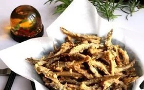 3.锅里下多点油360百科烧到7成热下小海鱼入锅炸,不要翻的太勤,以免散架了,炸成金黄色捞出沥油。