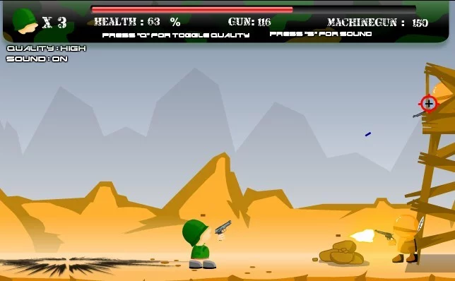 《西部闪电战》是一款冒险类小游戏,游戏大小为1.59M. 中文名 西部闪电战 游戏类型 冒险游戏 游戏操作 鼠标键盘操作 背景设定 勇敢的陆战队员接到命令去丛林中找到毒贩的老巢并将毒贩全部消灭。操作方法 点击play开始游戏。控制上下来自左右,鼠标控制准星的移动,点击左键射击,空格键切换武器,g炸弹。 游戏目标 消灭所有敌人战胜最后题阻角款害boss。 点击展开全文 转载请注明出处安可林文章网 » 西部闪电战