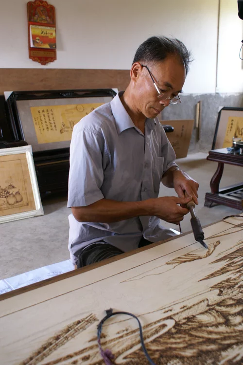 郑光灿,一位朴实的农民痴迷上了烙画。来自现年57岁的郑光灿先生,是秀屿区埭头镇湖东村人。从小就对画画产生浓厚兴趣的他,30年前痴迷上了烙画艺术。经过近30年勤学苦练,成为在社会上有名的民间烙画家。在艰难的创作历程中,他努力探索独特的艺术风格,其创作的作品典雅细腻、生动传神。民间烙画家燃烧着的艺术情怀。今年秋季,郑光灿父子俩历时半年烙出莆田廿四景图,向在莆田召开的福建省第十四届运动会献礼。郑光灿用他独特的艺术风格展现出一位民间艺术家特色。