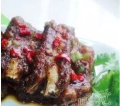 3、入寸骨翻炒,加盐、味精、十三香、来自生抽调味,待酱汁裹匀后,出锅即成。