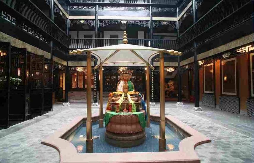 成都圆和圆佛禅客栈坐落在文殊坊民俗文区街区,充分遵循禅宗意境并结合中国传统审美,设计"左右逢缘""峰回路转"。客栈还收纳了大量珍惜唐卡,古老庙画等古玩古董。