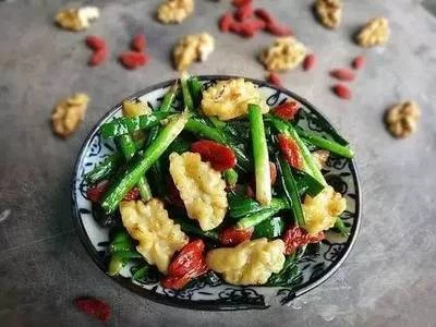 《核桃枸杞炒韭菜》是一道中国民间传统家庭美食,由来自核桃枸杞烹饪而成。