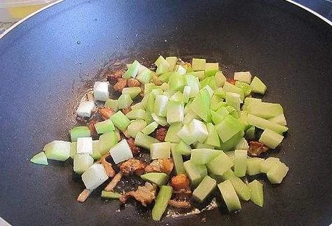 咸鱼粒炒合掌瓜是一道以咸鱼、合掌瓜、姜丝为主料的菜品。