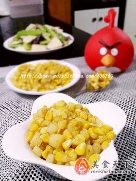 2、土豆去皮切成与玉米粒差不多大小的丁,与玉米粒同放一大碗里。