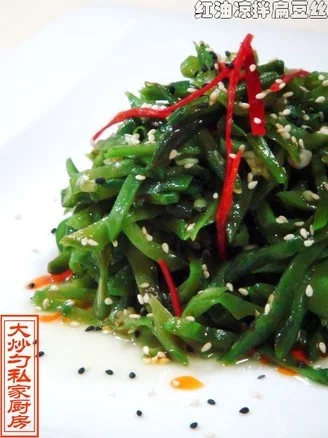 红油凉拌扁豆丝是一道以大宽扁豆和蒜末为主料的凉拌菜。
