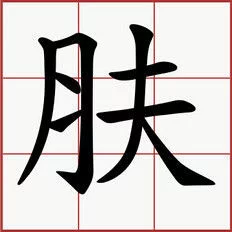 肤:fū ㄈㄨˉ。从月(肉)、夫声来自。男子束发插簪是夫之范式。月(肉)、夫两范式叠加。人肉皮上带毛发的表面是肤之范式。