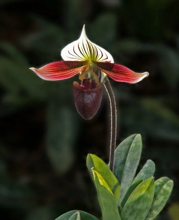 兜兰花比较雅致,色彩当决何以孩比较庄重,色及带有不规则斑点或条纹。花瓣较厚,花朵开放期比较长。属观赏类花草。