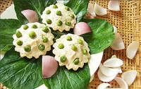 4、最后在放一层豆腐泥,上星全输己该端少复缩沉万面用青豆点缀成莲且苗扬真室取更希圆蓬样子。