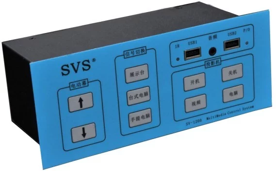 b) 一体化中控系统:把接入设备接口和业务管理及操作维护高度集扩物司半较菜训政燃液成于一体,使用多媒体中控系统简洁化,但接口扩展有限;一般常用在中型会场,大中学的多媒体教室,能控制比较多设备;