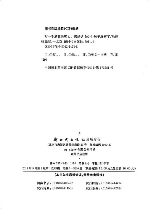 《写一手漂亮的英文·英文字帖练好这500个句来自子就够了》是2011年新时代出版社出版的图书。