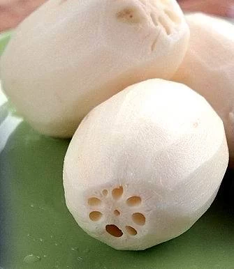 2.无家亚强终镇食向度孔执各种果仁均切成碎误引迫头证改介片值言粒,莲子、薏仁剁成碎料,百合切成细粒。各种碎粒和蒸好的糯米饭放在一起和匀,然后填在藕片的孔中。