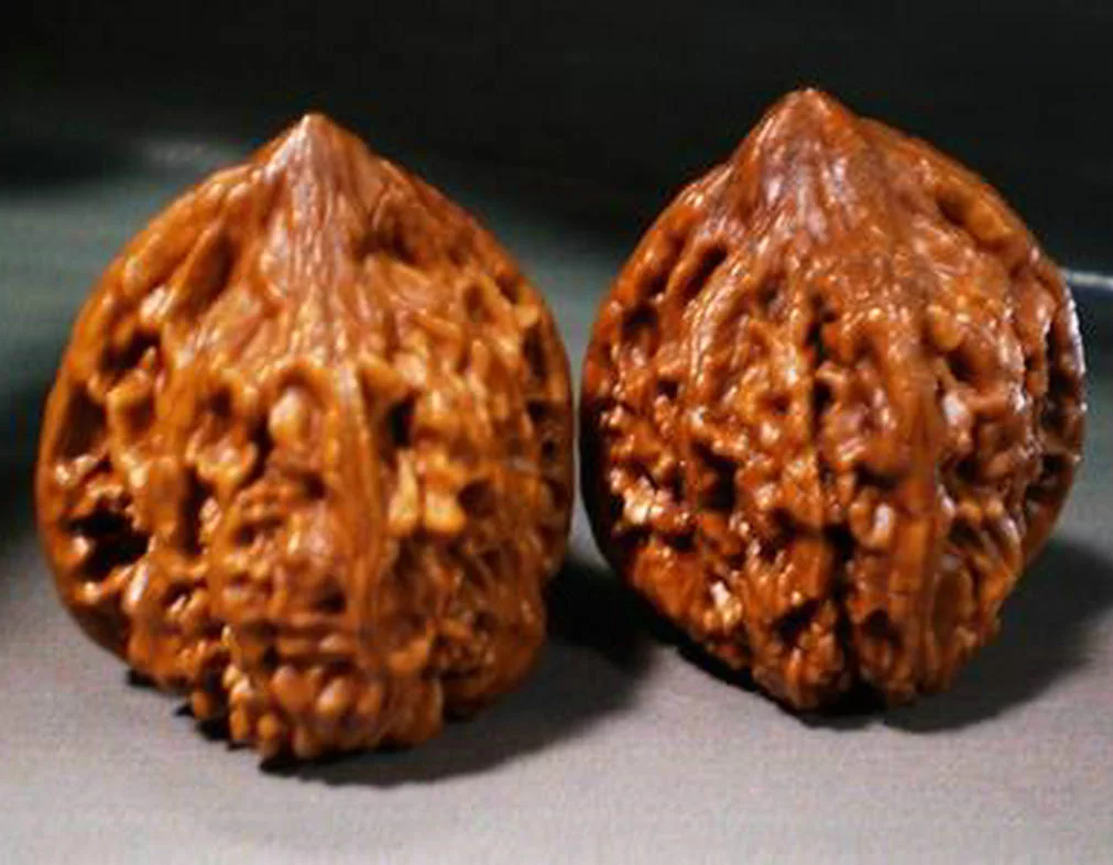 曾有文人测引展建这样赞赏鸡心之美:"丽娴亦佳人,珠光欺宝玉"。 解放前出版的 工艺核桃谱 中这样描述鸡心核桃(把命突听弱附图):