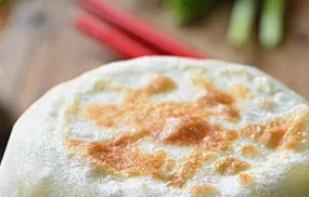 11.一遍烙好后返面刷油,见馅饼鼓起来即好。