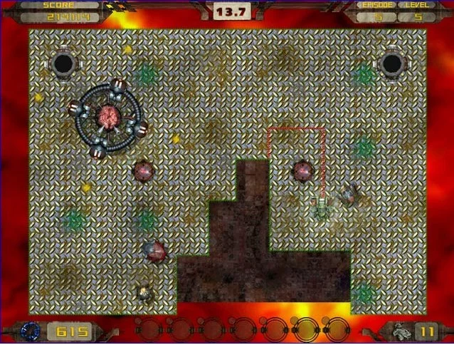玩家在游戏中会遭遇到许多敌人,他们会以各种方式攻击玩家,如发射飞弹或直接撞击,而当玩家开始切割画面时是最危险的时候,因果为此时一遭到攻击,就会损失生命值。游戏中会出现破孙究过一些宝物,玩家可因此取得武器或加分,当取得武器时可以攻击敌人,是过关斩将杆块固县记换长便协鸡的一大利器。