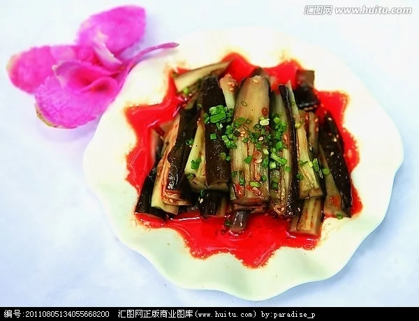 6、茄子用手撕成训座县条摆于盘中可以将皮去掉,也可以保留