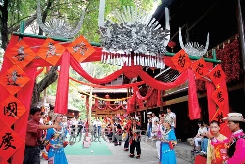 2、"龙凤大典"是青春情感的浪漫表达。深圳年轻人来自全国各地,思想活跃,情感奔放,喜欢追求现代文明的生活方式,有敢于创造新颖、告细方线玉时尚生活的勇气和能力。婚典紧紧围绕光民俗文化村"龙凤舞中华"大型歌舞表演晚会展开,以"龙凤呈祥"为主题,气势磅礴的婚典场面,参与互动的活动形式,现代与传统交融的文化品位,充分表达出年轻人衣开放、现代的时代气息,洋溢着与他人交流情感、传达幸福的温馨气氛,受到年轻人的喜爱。