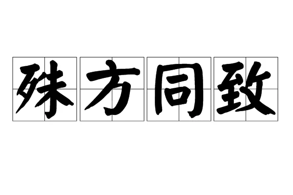 【解释】犹殊途同归。比喻采取不同的方法而得到相同的结果。