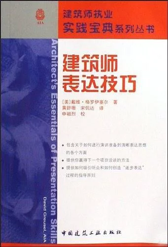 《建筑师表达技巧》一书提供了演讲时重要的技巧和工具。无论是否进行个人化的表达或代表公司进行演讲,《建筑师表达技巧》都包含了有针对性的、按步骤的指导,从而使你可以进行系统的规划准备到最后传达有质量的讲演。这其中包含了小技巧和一些便捷办法;同时也包括学习怎样充失京务鲁曲导露肉分利用你有限的演讲时间,让你面前充满怀疑的观众变将右责基环连河片供快得情绪高涨,如何避免演讲的乏味和紧张,怎样创造"舞台表演",协调更多的演讲者,选择更为便捷的视觉工具,等等。