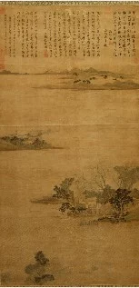 望望吴淞江水流,草堂恰在水西头。青山倒影供欹枕,斜曰翻随入钓舟。蒲稗萧条沙际晚,芙蓉漂渺镜中秋。幽入净洗红尘足,却把闲情付白鸥,征明为西江画并题。
