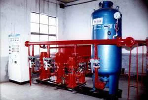 消防气压给水设备通常由气压水罐、水泵机组、电控柜及辅件组成。在水泵启、停状态均能向消防管网供水的设备。